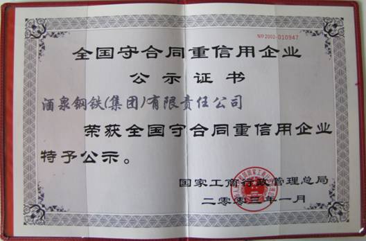 全國守合同重信用企業(yè)