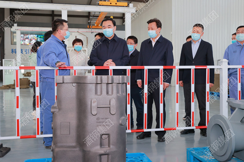 馬廷禮先后來到技術(shù)中心中心實驗室、新材料研發(fā)中試基地,西部重工公司3D打印智能工廠,煤基氫冶金中試基地,現(xiàn)場了解酒鋼生產(chǎn)經(jīng)營、科技創(chuàng)新、“三化”改造、資源綜合利用等情況,聽取有關(guān)工作匯報。